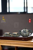 獨家仿生器代表,極品段泥/綠泥制,整器以“西瓜”為原型,精美逼真,妙若天成,一壺二杯二碟生機勃勃,奇趣橫生!