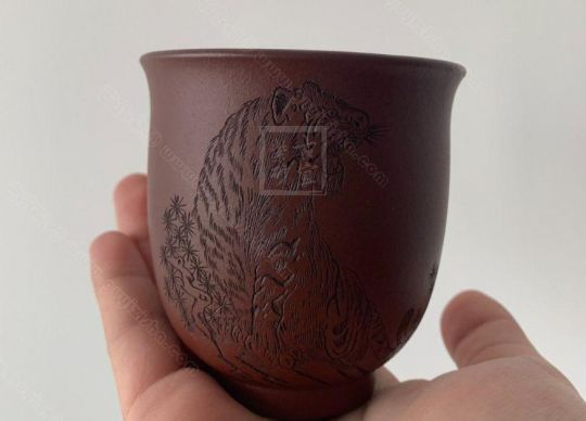大紅袍泥料低張力,收縮比幾乎達紫泥系的三倍,制作時泥性掌握不易,古代用于增添紅泥艷潤調色之用,為傳說中最具神秘色彩之極品朱泥之一。燒制時易起節皺、開裂、塌陷、變型、窯溫輕者偏黃易還原,重者變形起泡,成品率低。燒成后質感綿密、緊實細致,持之扎實沉重、紅潤艷麗,泥中極品,無以倫比;泥胚含少許原礦顆粒,沖淋熱水后色變極大,呈紅中帶紫,養壺易現“包漿”之美。窯溫約1080度,收縮比約30%。